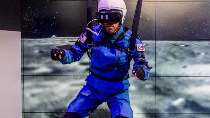 Oct 2017 – Jul 2018This project was genuinely incredible to work on, and I was happy to have led development on it. For Samsung we commissioned huge low-gravity simulator rigs like the ones NASA uses to train astronauts, formed a Space Act agreement with NASA, and got their approval on the project. The rig would lift each user to calibrate to their weight and then lower them slowly as they jumped to match the feel of lunar gravity. We took that motion data and fed it into the Gear VR experience so people could jump around and explore a virtual, but accurate, representation of the moon.