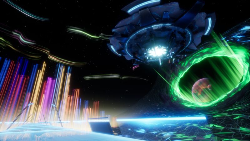 May – Oct 2018This project was wild both technically and visually. It was an Unreal job, and probably one of the most striking things I worked on at Framestore: it began in a calm utopian landscape before throwing you through a wormhole into a Tron-like city of neon geometry. We used Houdini heavily for explosions, rubble, and some of the more unusual rendering tricks, including processing geometry from the CG team so we could do shader work that sold the glowing polygonal look properly.